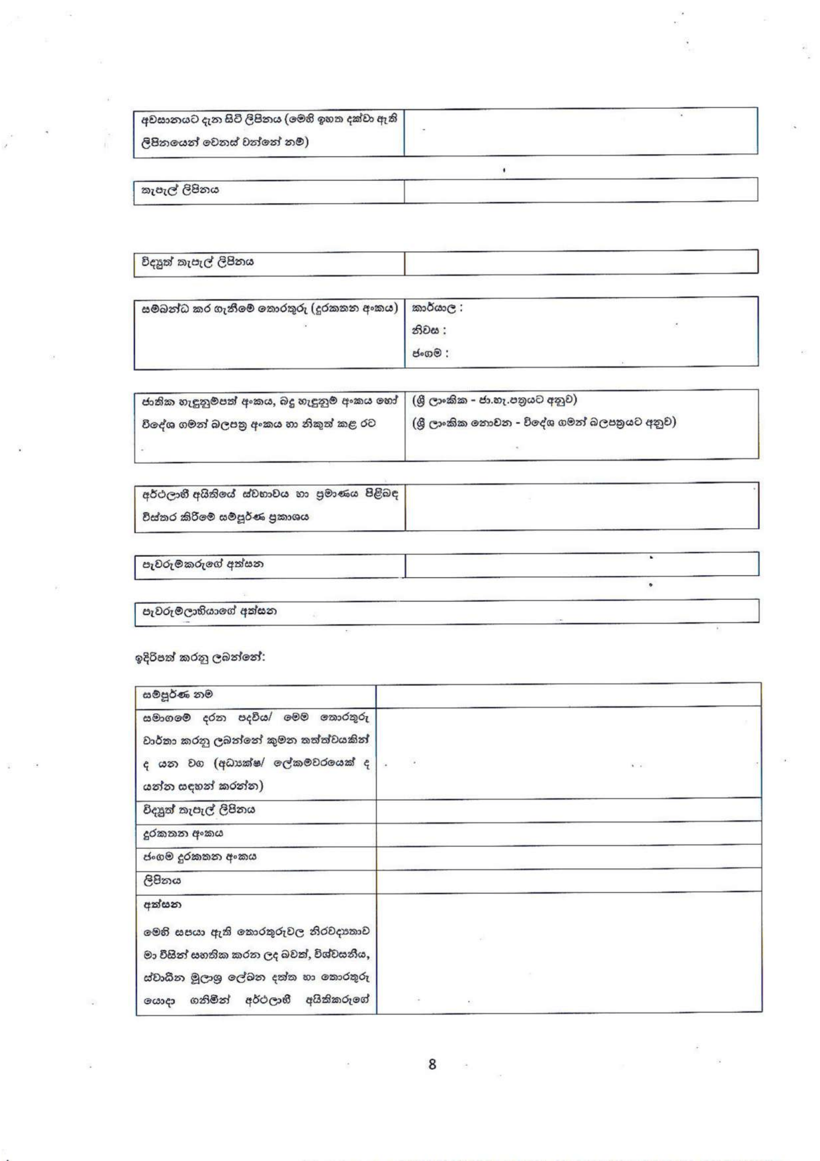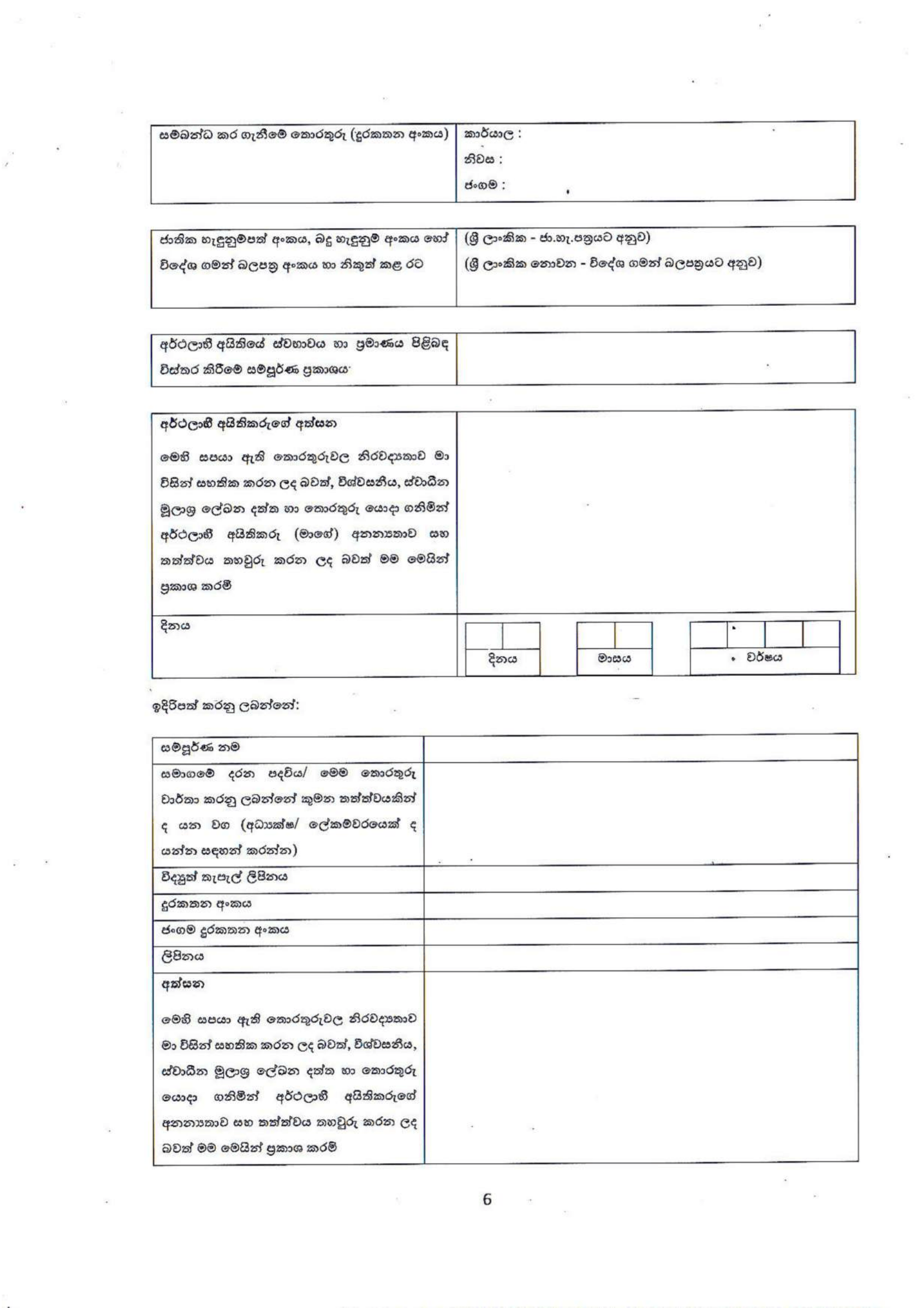 FORM BO 05: BO දත්තවල නිරවද්යතාවය පිළිබඳ වගකීම දරන "බලයලත් පුද්ගලයා" නිල වශයෙන් පත් කිරීම.